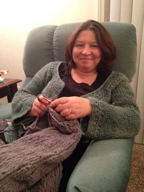 Loved these little pockets on the ends of the scarf, too. I had to kind of guess how long to make this to fit her arms, since she doesn't live close by. But I think I made a good guess, because my SIL tells me it fits just fine.